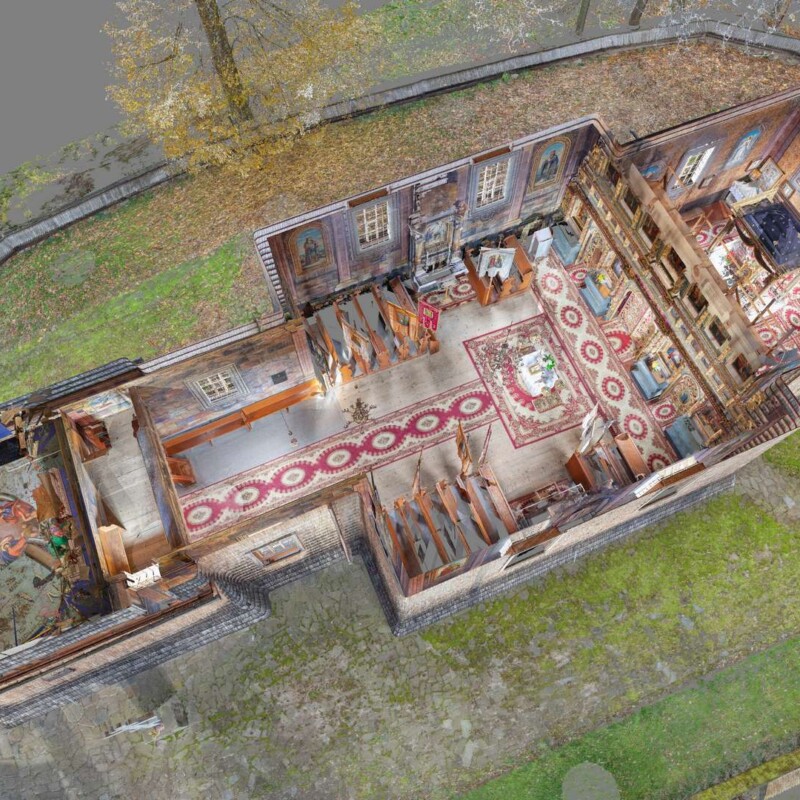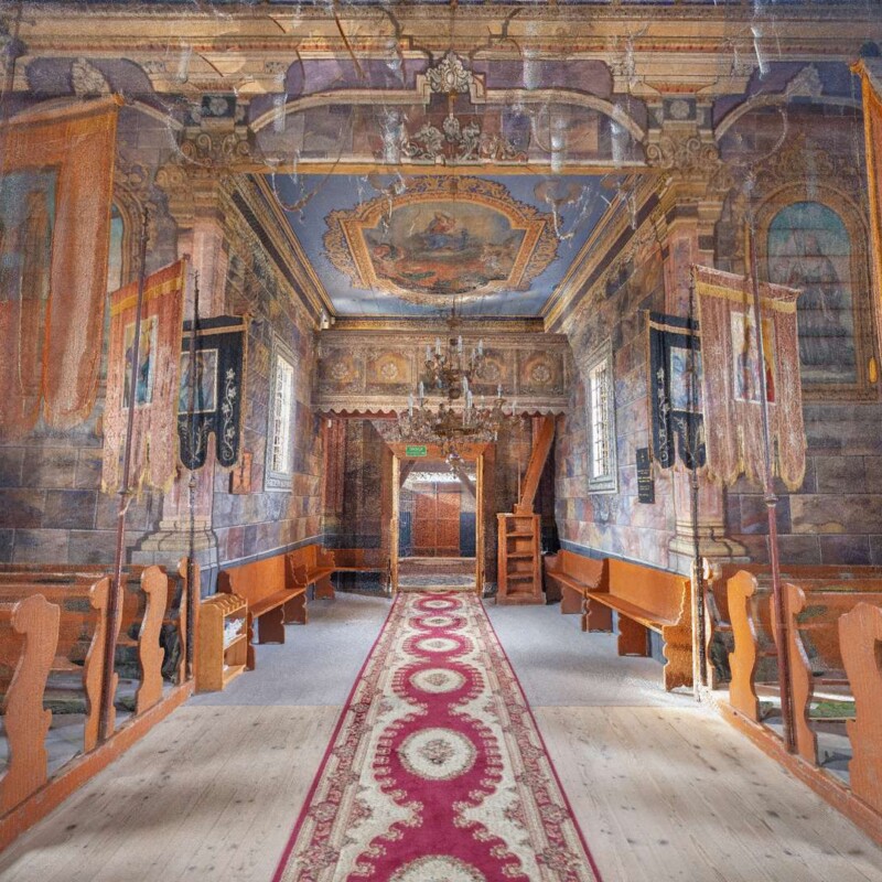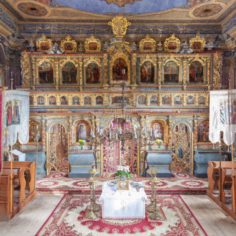 Ikony okalają bogato rzeźbione, złocone ramy.